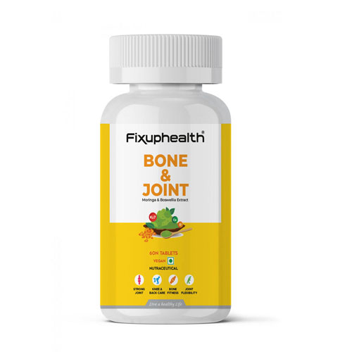 Fixuphealth Bone and Joint tablet helps boost joint mobility, increase joint flexibility, support joint structure & protect joint tissue.These supplements are natural powerful formula for joint aches relieve soreness in joints and helps move hassle-free.The Moringa extract in the supplement is rich calcium therefore is it used as calcium supplement for food. Be ready to enjoy hassle free and pain free life. These capsule ease the pain and discomfort that comes with  age,weight,or athletic deterioration of the joints and promotes natural healing.This Tablet is Plant Based, Gluten free,Non GMO,GMP Certified and Cruelty Free.