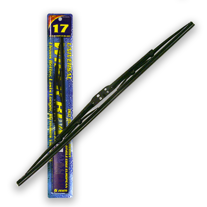 Single Edge European Style Metal Wiper Blade. Steel metal frame construction. Extremely durable. Excellent quality. Powder coating finish prevents rust. 6 mm rubber with metal insert blade refill as OEM equipment. Aerodynamic design provides even pressure distribution along the entire length of the wiper blade to prevent vibration smearing and water streaking.