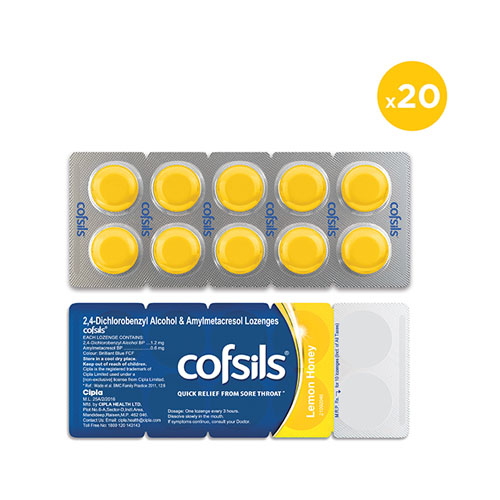 COFSILS® Lozenges is a leading brand in India that provides quick relief from sore throat in 5 minutes*.Their unique Triple Relief Formula with Antiviral, Antibacterial and Local anesthetic properties soothe the throat thus providing immediate and lasting relief. Honey-Lemon Flavour.