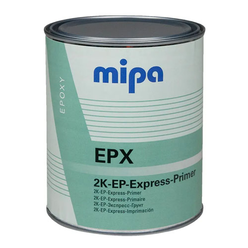 Mipa 2K-EP-Expressprimer EPX – wet on- wet filler on epoxy resin base. Very good flow, optimal gloss. Very fast drying and recoatability, sanding. (colour: Light grey) Mixing ratio: 1:1 Hardener: MIPA 2K-EP Expresshardener EPH