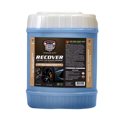 RECOVER is a premium grade solvent-based, liquid silicone dressing formulated for professional detailers. RECOVER is used on vehicle vinyl tops, rubber tires and trim. RECOVER exhibits outstanding water resistance to help keep rubber and vinyl clean and shiny longer.